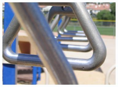 | "Swings" I kind of like this one mostly because you can see the big sky in Colorado. I love the trees in the East, but I love the big sky. I also like the line the swings make. |