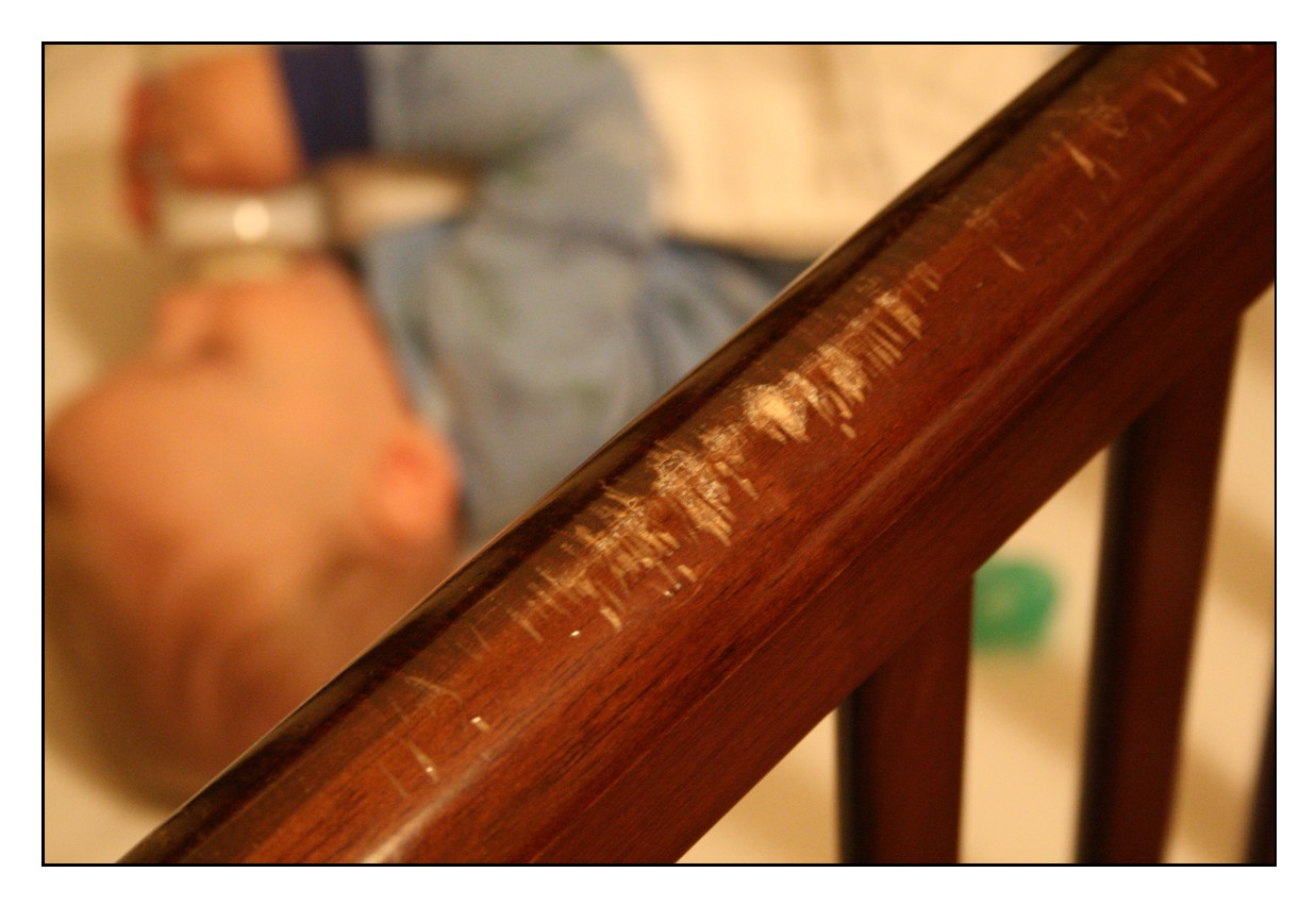 his crib. Do you think he might be teething or something? Poor kid. I hope that it made his jaw feel better at least. Teething
