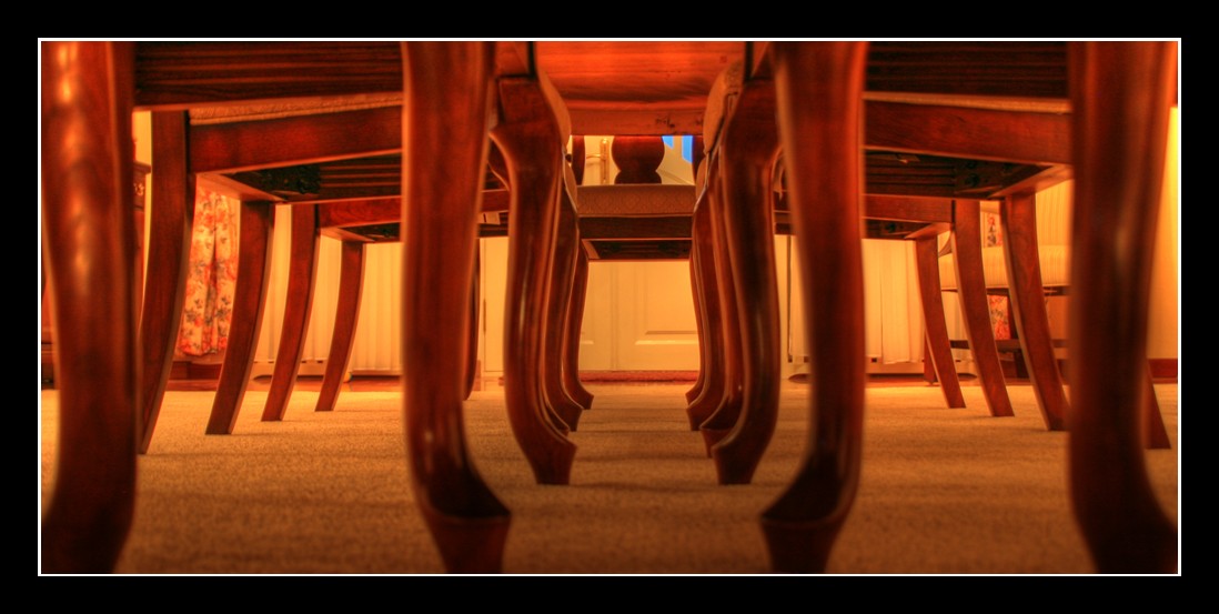 addition to a newsletter (about time!), here's a little HDR pic of the forest of chair legs underneath my dining room table. I don't