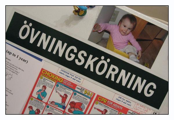 My really big magnet that I got in Sweden. It means "practice driving" and you have to have it on your car when you're driving