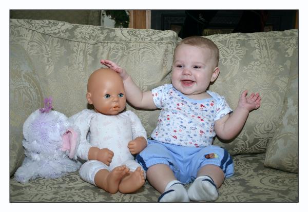 happy half birthday to the little one. We've been trying to track Chester's growth by taking pictures of him with Audrey's doll