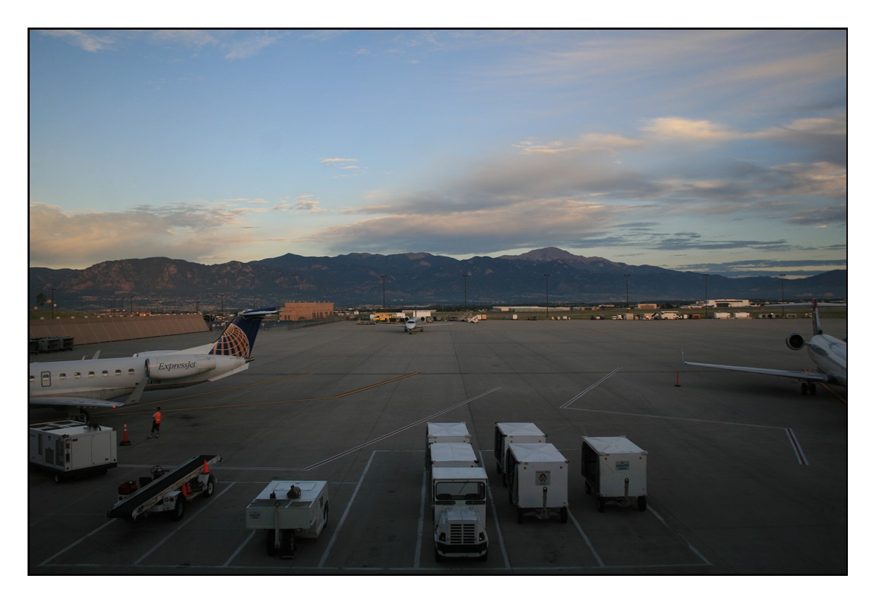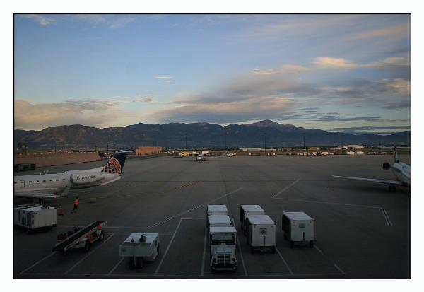 starting with one last view of Pike's Peak out of the window at the Colorado Springs airport, to the waiting room (where our flight was
