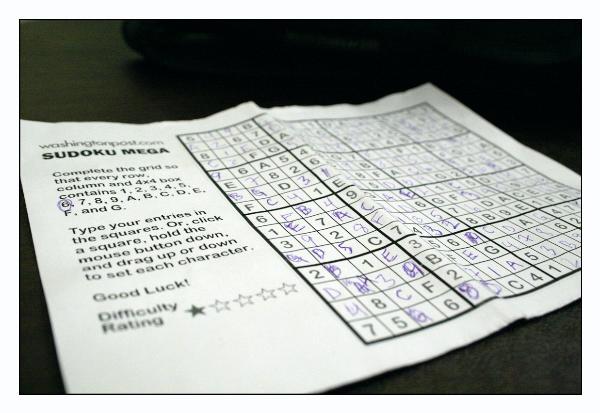 So, I've found a new distraction to pass time on the metro. SUDOKU!!! But not just any Sudoku, MEGASUDOKU!!! These