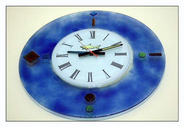 This clock came with the apartment, but we like it a lot. It's really round. It's placed kind of high, so I had to stand on a chair,
