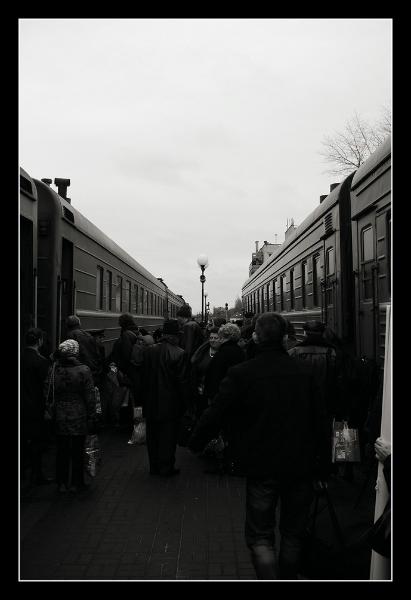 they are the train station on arrival (mine was the one on the left), my first ride in a Lada, the broken telephone pole from the big