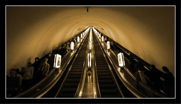 middle is the escalator on the way up from the metro (note the unused escalators in the middle. Never wanting to waste energy