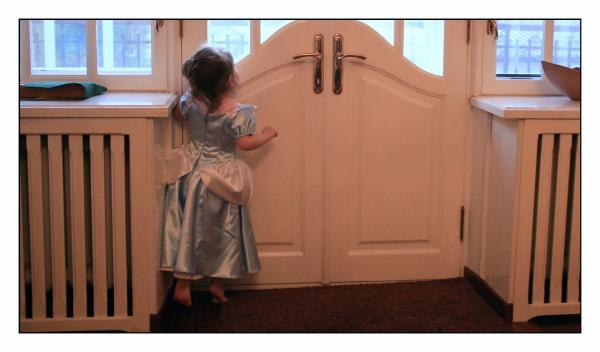 be too cold for them. She's wearing her Cinderella dress. She likes it a lot and puts it on at least once a day, it seems.
