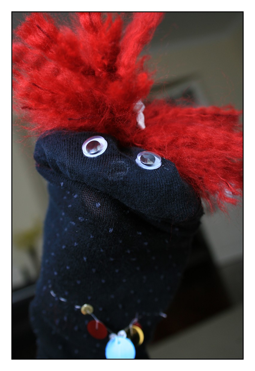 I had some socks I was going to throw away, but then thought that maybe Audrey might want to make a sock puppet. So, Laura
