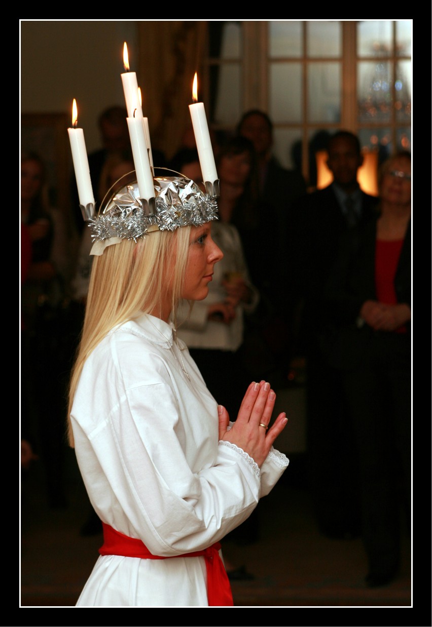 December 13th is St. Lucia Day in Sweden, and work had a Lucia fest today. I was really impressed that the Lucia used real